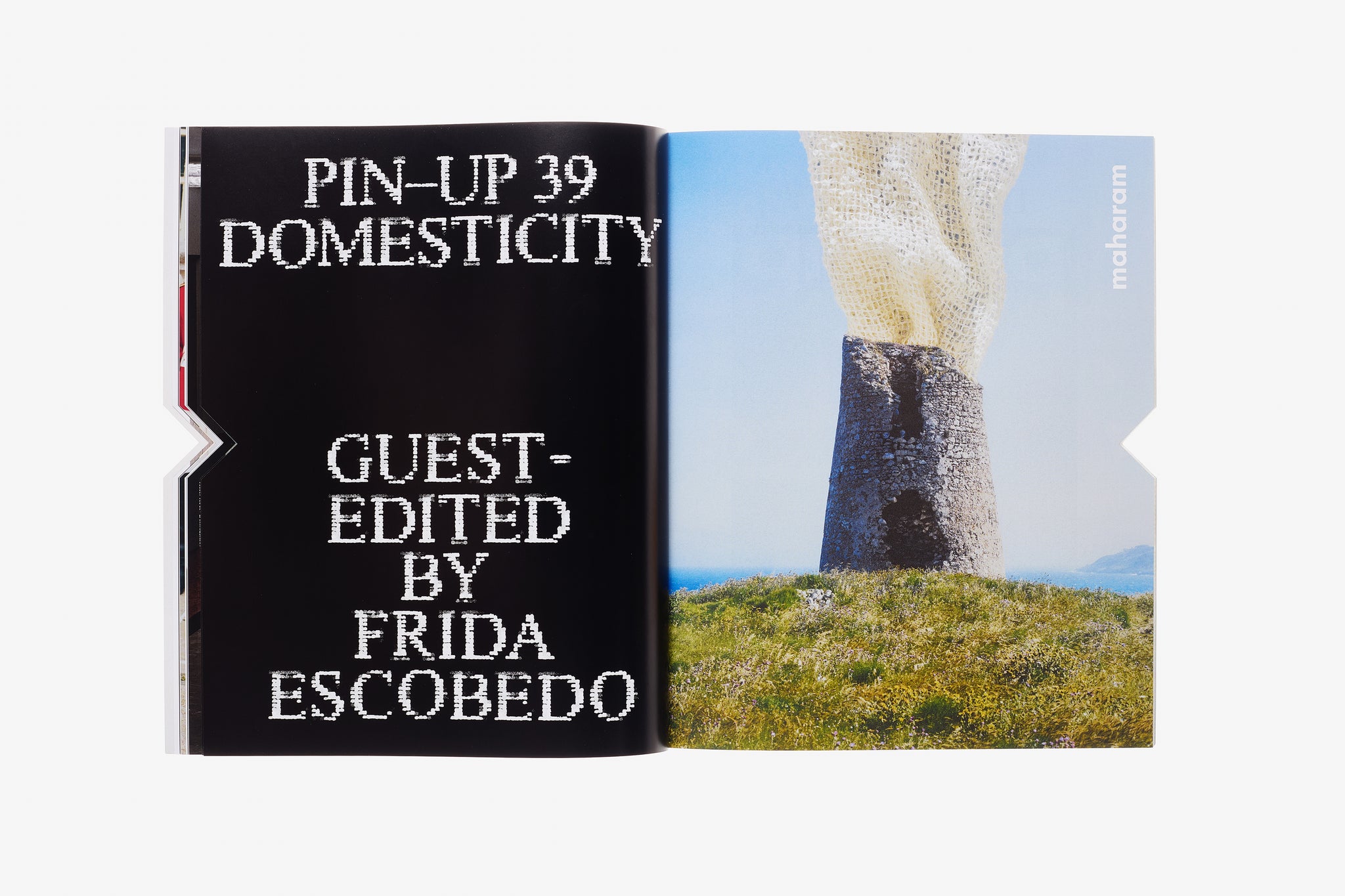 The PIN–UP Domesticity Issue, guest-edited by Frida Escobedo. This issue brings together critical work by Escobedo’s friends and colleagues and her own research archive on domesticity, its theoretical implications, and its material challenges. From intimate conversations about family rituals to beautiful interiors that defy how we think about comfort and luxury. Cover image by Asger Carlsen.