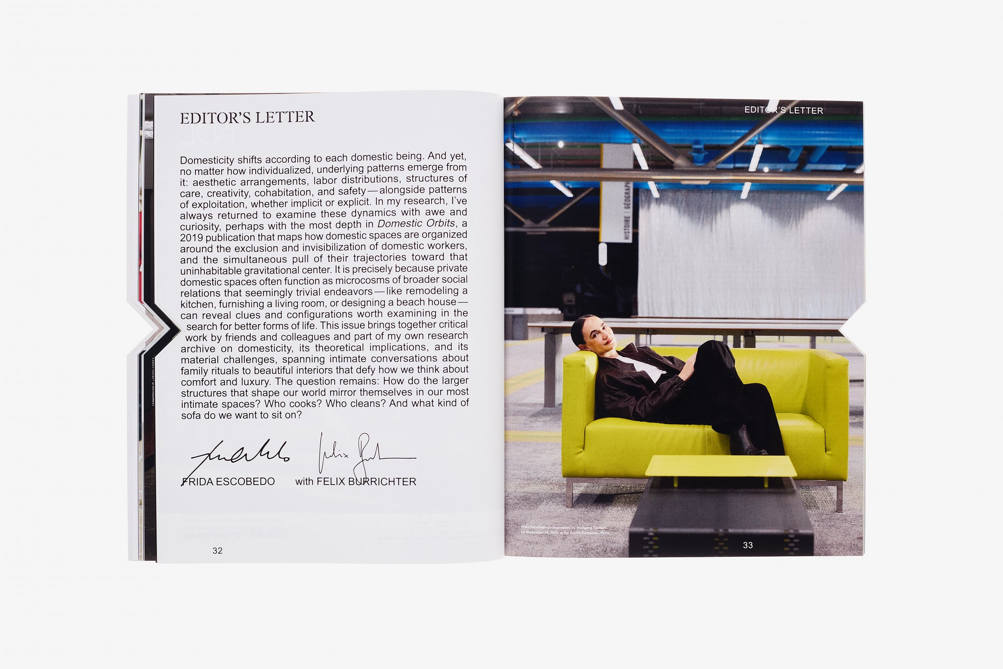 Also in the issue: A scrapbook of references tracing Frida Escobedo’s thinking on domesticity — from ORDOS 100 to contemporary migrant women’s refuges; an essay on the architecture of domestic labor; a meditation on Donald Judd that collapses the boundaries between architecture, art, and design; a conversation with José Esparza Chong Cuy on Storefront for Art and Architecture’s storied past and bright future; a visual tour of artist José León Cerrillo’s Mexico City home; Sheila Hicks’s revived Andean textiles; an architectural reading of the Metropolitan Museum of Art’s period rooms; a Postmodern gem on Fire Island getting a second, salt-air-kissed life; design icon Peter Saville musing on his career and creating textiles; Sam Chermayeff’s practice continues to test (and tease) the limits of domestic norms; and so much more.